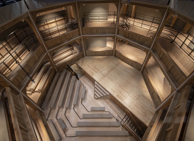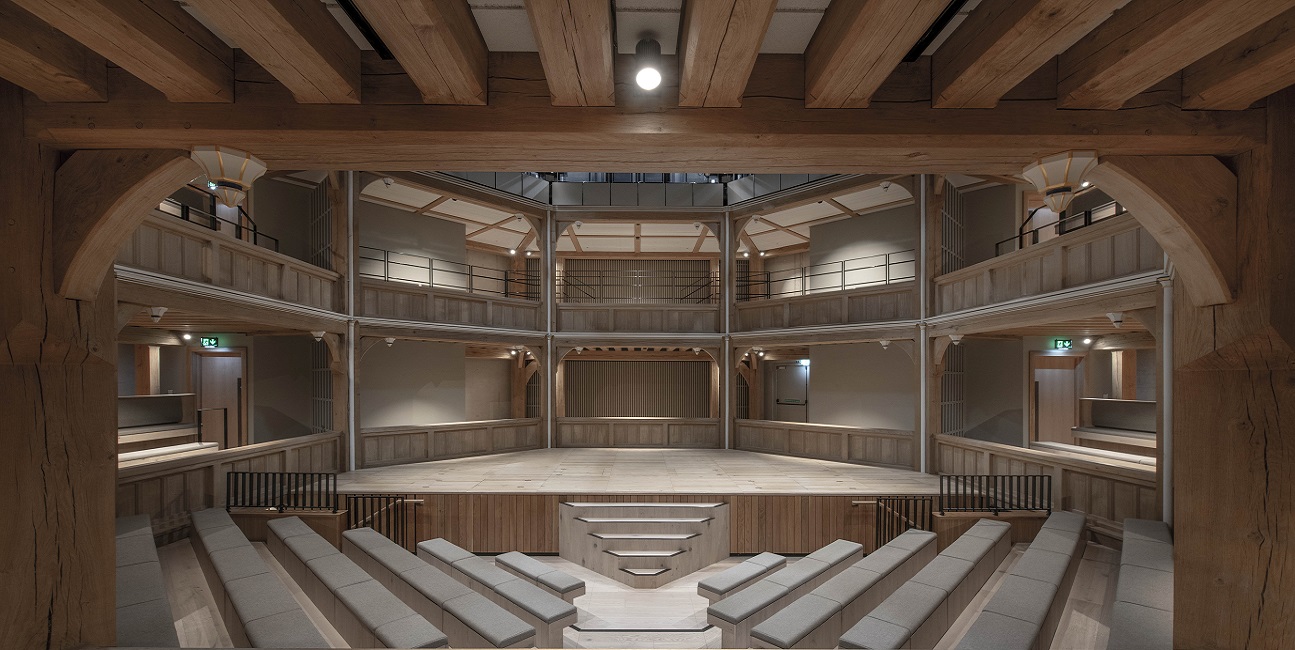 A contemporary signature building with a striking external façade, the Shakespearean era playhouse is based on the 1629 Cockpit-in-court theatre, and earlier designs by the celebrated architect Inigo Jones with a capacity of 320-470 seats, dependent on the chosen stage format.